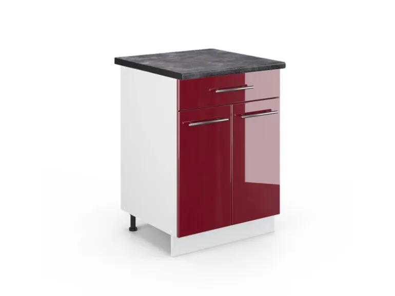 Der Schubladenunterschrank hat Breite 60 cm, Höhe 82 cm und Tiefe 60 cm