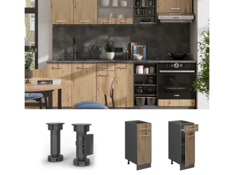 Lieferumfang: Küchenschrank als Bausatz, Montageanleitung, Montagematerial
