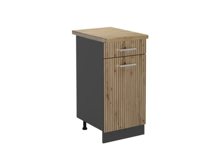 Der Schubladenunterschrank hat Breite 40 cm, Höhe 81,6 cm und Tiefe 60 cm