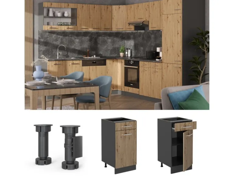 Lieferumfang: Küchenschrank als Bausatz, Montageanleitung, Montagematerial