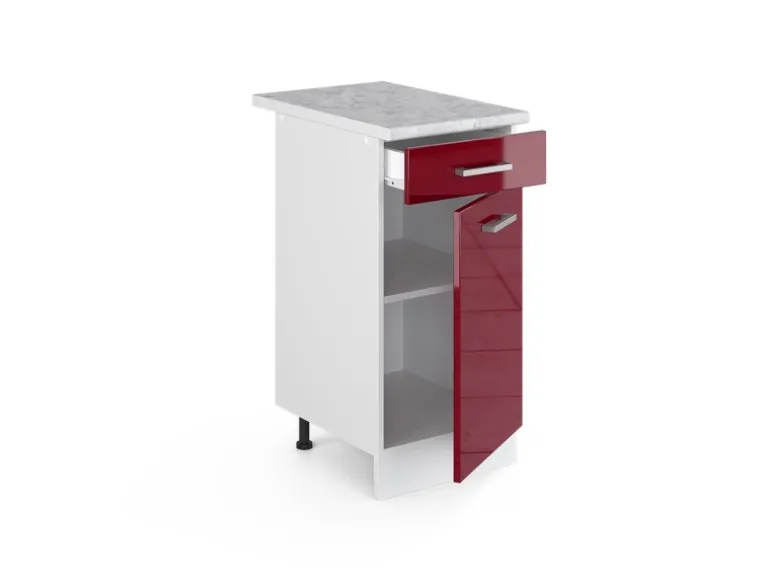 Der Schubladenunterschrank hat Breite 40 cm, Höhe 81,6 cm und Tiefe 60 cm
