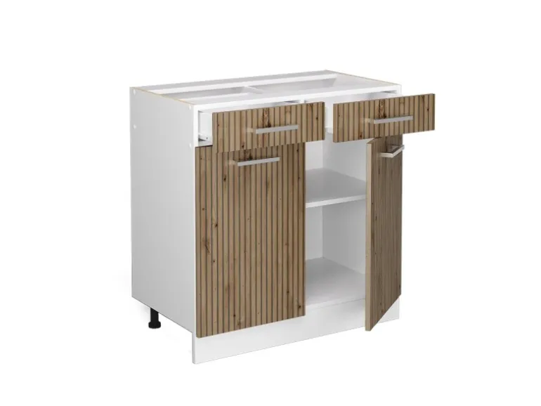Der Schubladenunterschrank hat Breite 80 cm, Höhe 81,6 cm und Tiefe 60 cm
