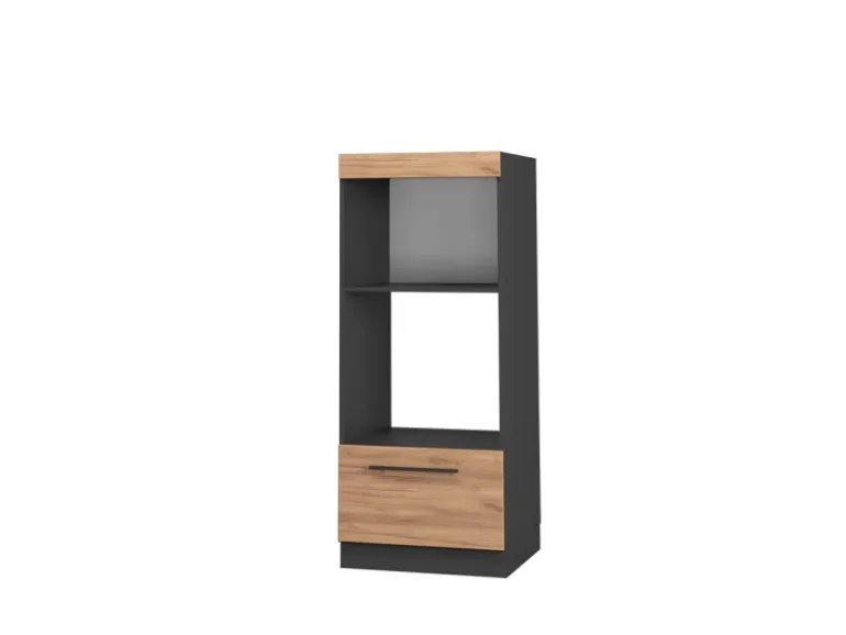 Der Küchenschrank für die Mikrowelle hat Breite 60 cm, Höhe 153,6 cm und Tiefe 58 cm