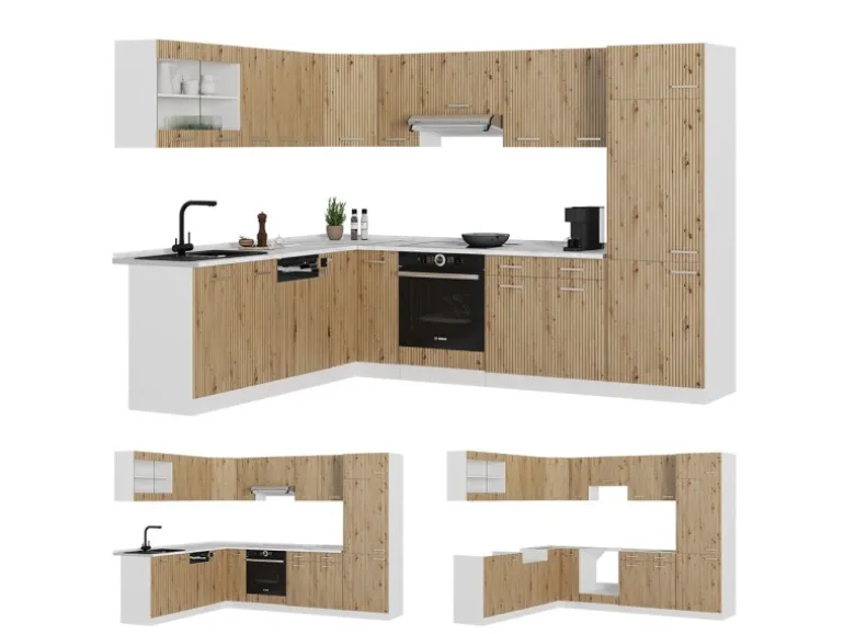 Die Küche in L-Form bietet zusätzliche Module und ein umstellbares Design nach Belieben