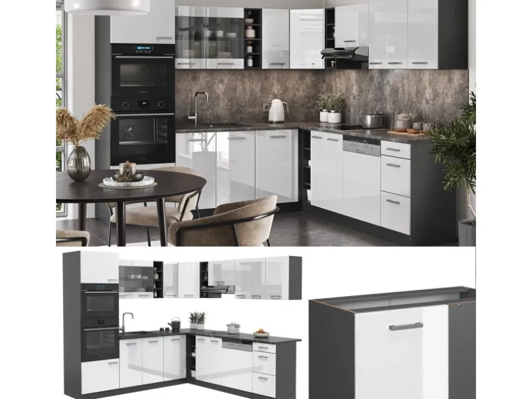 Die Küche in L-Form bietet zusätzliche Module und ein umstellbares Design nach Belieben