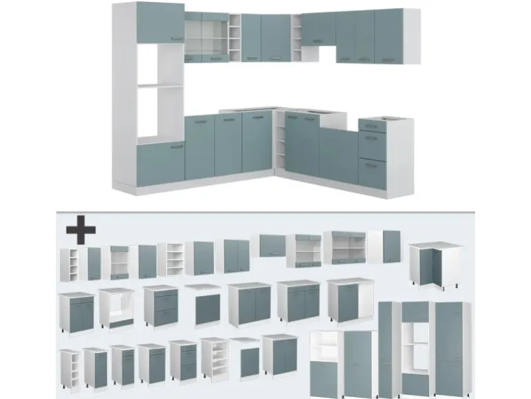 LIEFERUMFANG: Küchenblock als Bausatz, Arbeitsplatten, Montageanleitung, Montagematerial