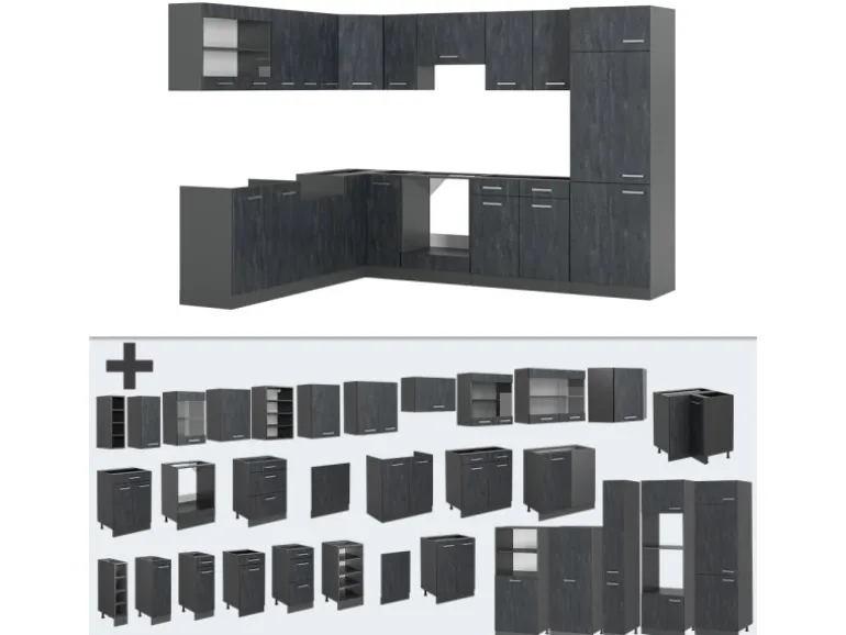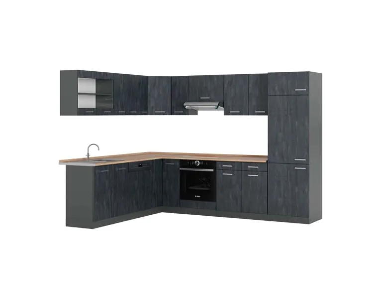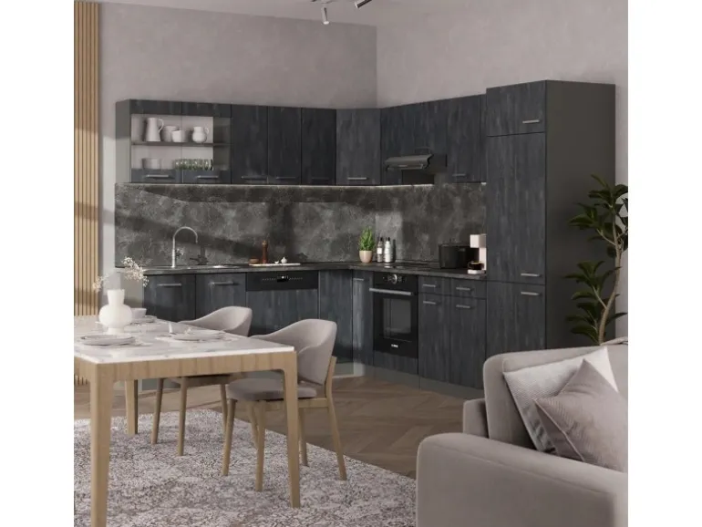 Die Küche in L-Form bietet zusätzliche Module und ein umstellbares Design nach Belieben