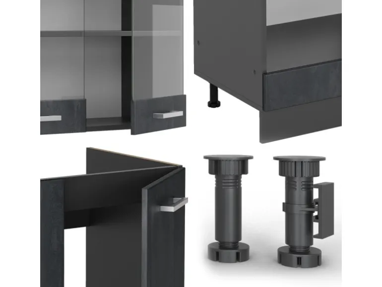 LIEFERUMFANG: Küchenblock als Bausatz, Arbeitsplatten, Montageanleitung, Montagematerial.