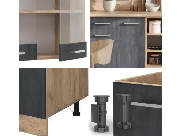 LIEFERUMFANG: Küchenzeile als Bausatz, Arbeitsplatte, Montageanleitung, Montagematerial.