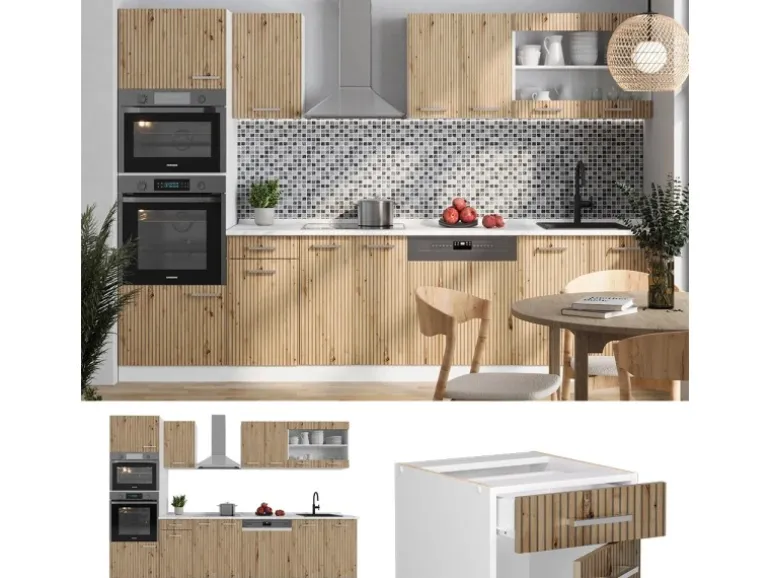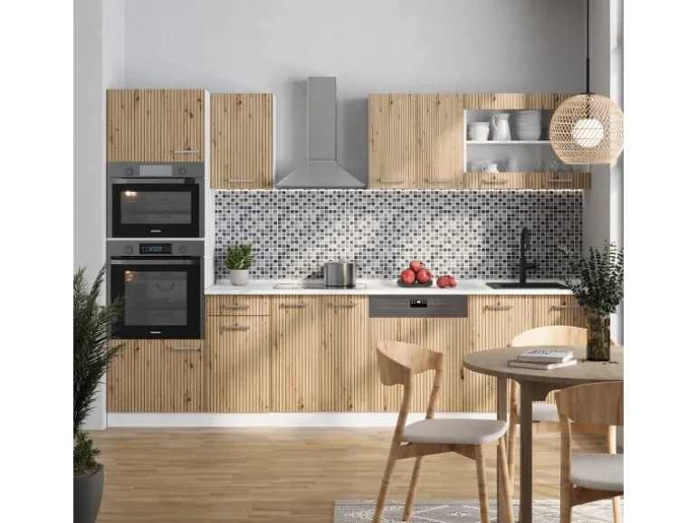 Das Küchenmöbel hat eine Breite von 300 cm, eine Höhe von 207 cm und eine Tiefe von 60 cm