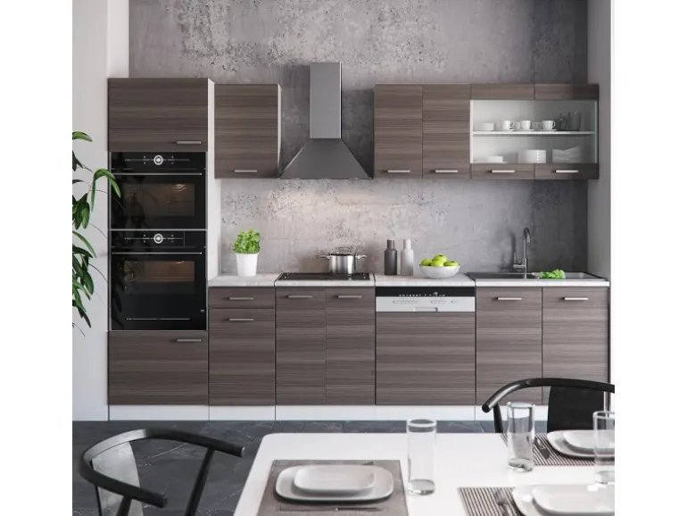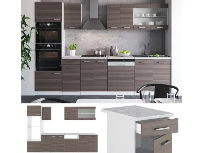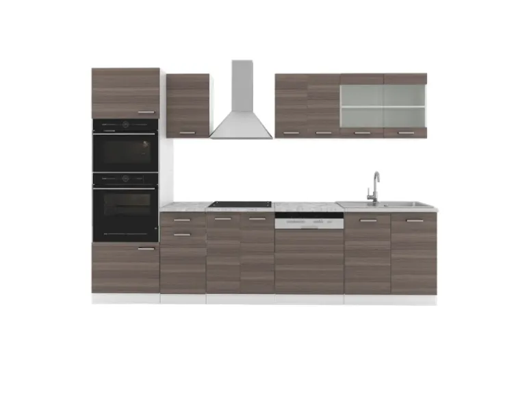Das Küchenmöbel hat eine Breite von 300 cm, eine Höhe von 207 cm und eine Tiefe von 60 cm