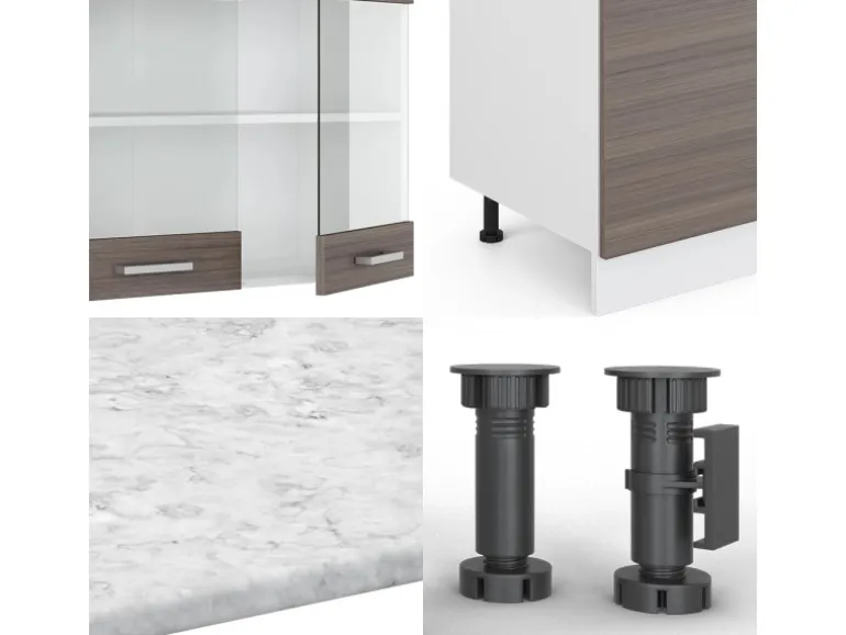 Der Küchenblock besteht aus pflegeleichter Spanplatte 16 mm, mit einer Melaminharzbeschichtung