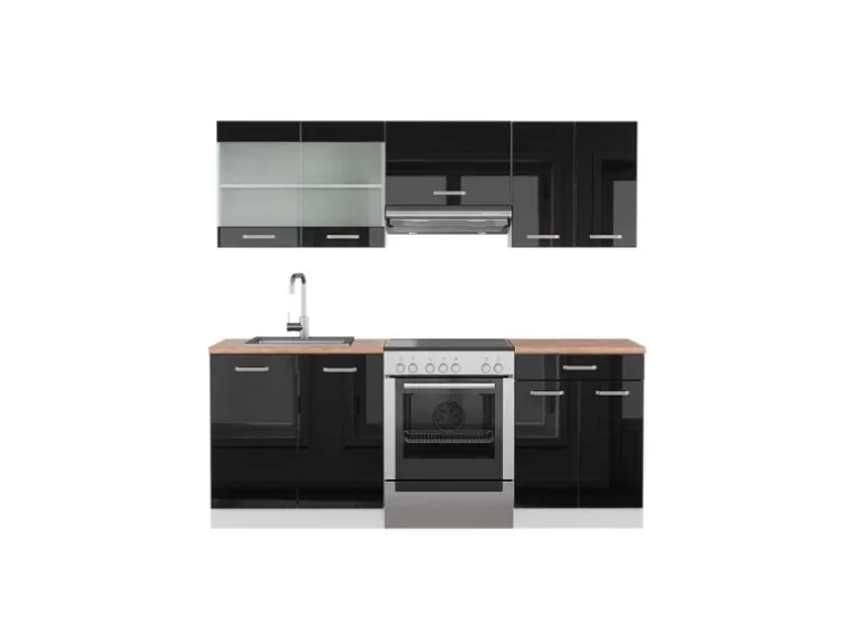 Das Küchenmöbel hat eine Breite von 200 cm, eine Höhe von 82 cm und eine Tiefe von 60 cm