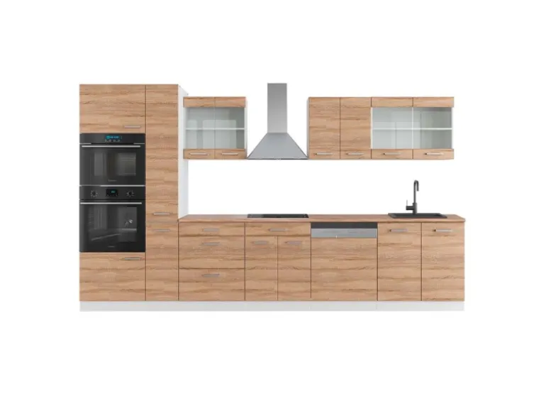 Das Küchenmöbel hat eine Breite von 350 cm, eine Höhe von 206,8 cm und eine Tiefe von 60 cm
