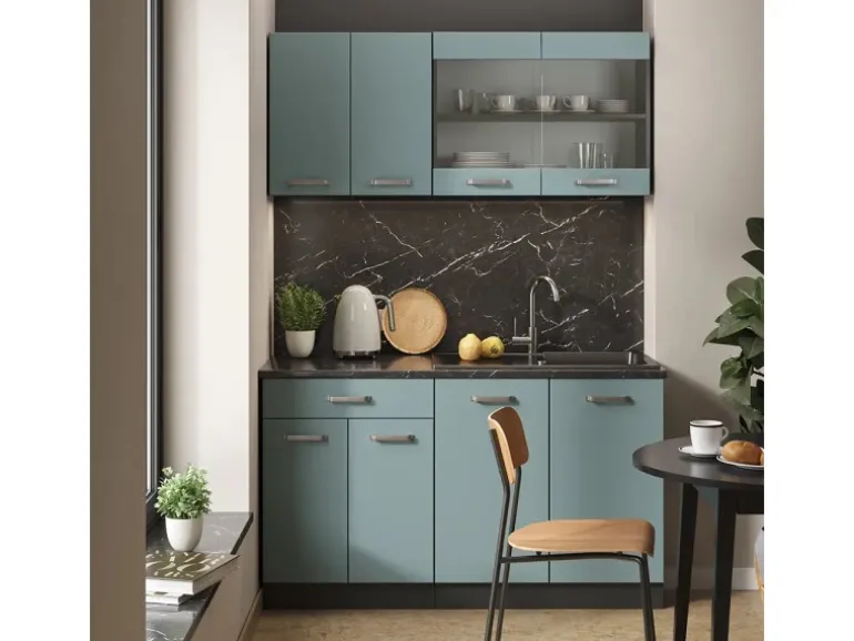 Der Küchenblock besteht aus pflegeleichter, melaminharzbeschichteter 16 mm Spanplatte.
