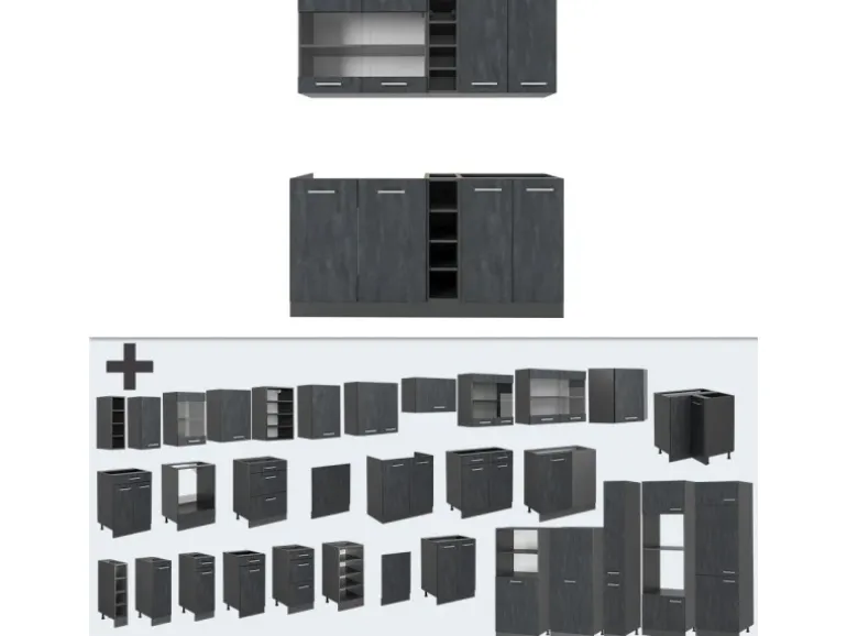 LIEFERUMFANG: Küchenzeile als Bausatz, Arbeitsplatte, Montageanleitung, Montagematerial.