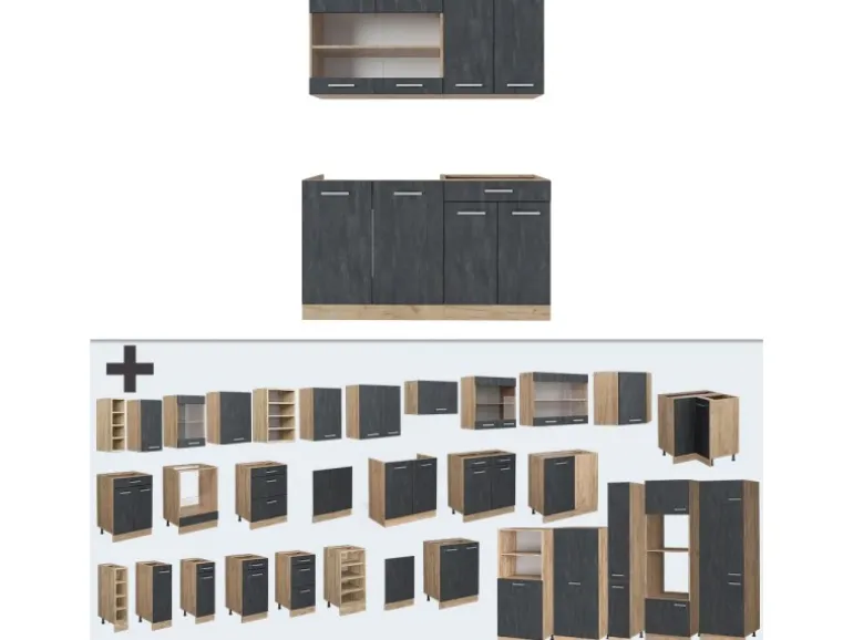 LIEFERUMFANG: Küchenzeile als Bausatz, Arbeitsplatten, Montageanleitung, Montagematerial.