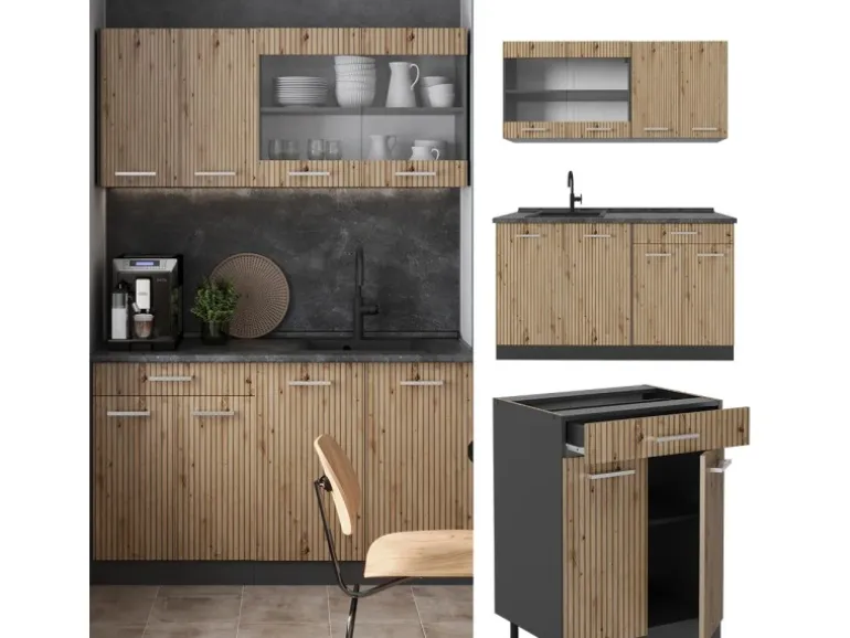 Der Küchenblock besteht aus pflegeleichter Spanplatte 16 mm, mit einer Melaminharzbeschichtung