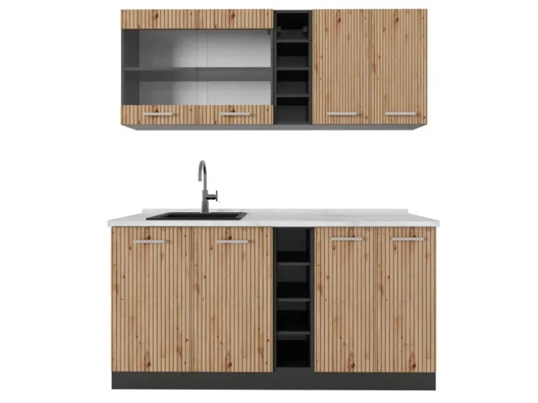 Der Küchenblock besteht aus pflegeleichter Spanplatte 16 mm, mit einer Melaminharzbeschichtung