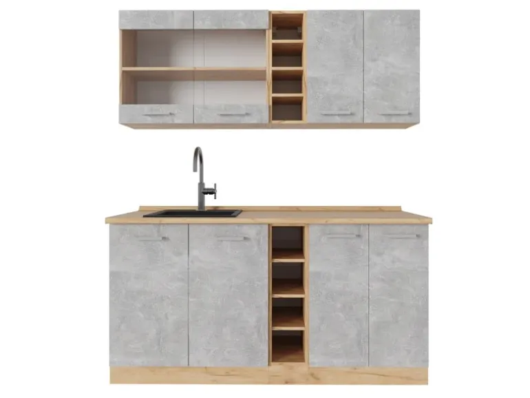 Der Küchenblock hat eine Breite von 160 cm, eine Höhe von 81,6 cm und eine Tiefe von 60 cm