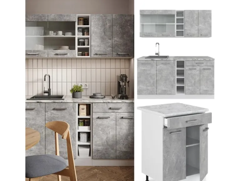 Der Küchenblock besteht aus pflegeleichter Spanplatte 16 mm, mit einer Melaminharzbeschichtung
