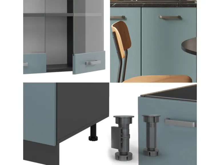 Der Küchenblock besteht aus pflegeleichter Spanplatte 16 mm, mit einer Melaminharzbeschichtung