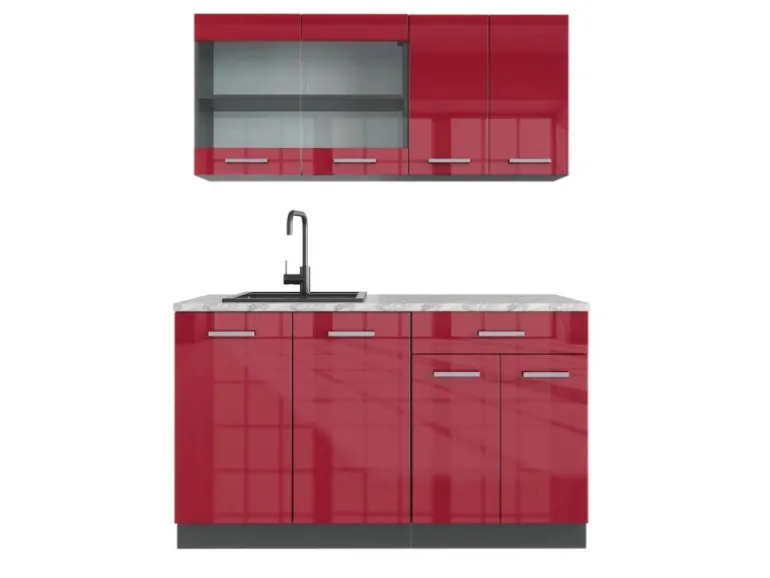 Der Küchenblock hat eine Breite von 140 cm, eine Höhe von 81,6 cm und eine Tiefe von 60 cm