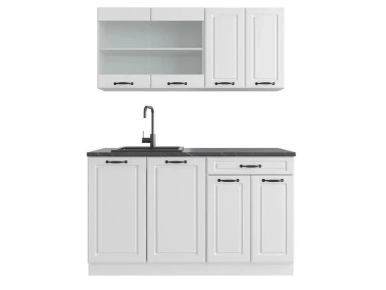Der Küchenblock besteht aus pflegeleichter Spanplatte 16 mm, mit einer Melaminharzbeschichtung