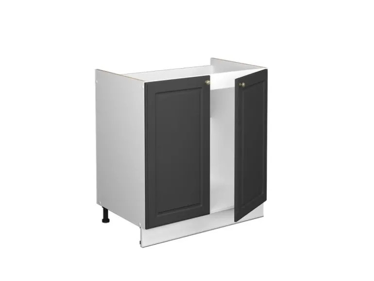 Der Spülenschrank hat Breite 80 cm, Höhe 82 cm und Tiefe 60 cm