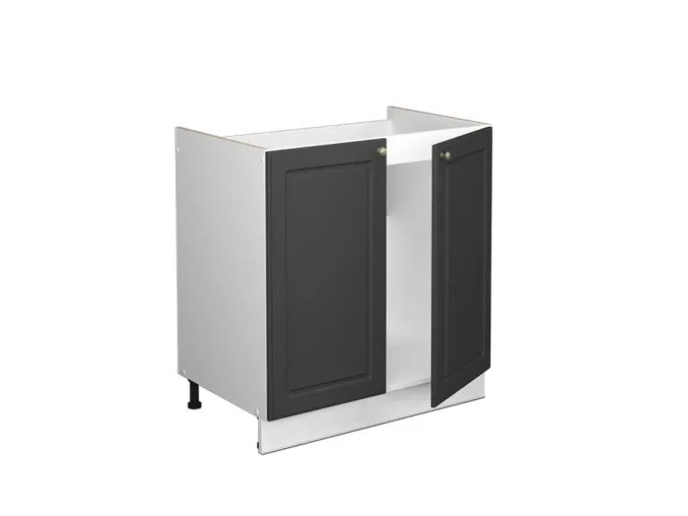Der Spülenschrank hat Breite 80 cm, Höhe 82 cm und Tiefe 51,6 cm