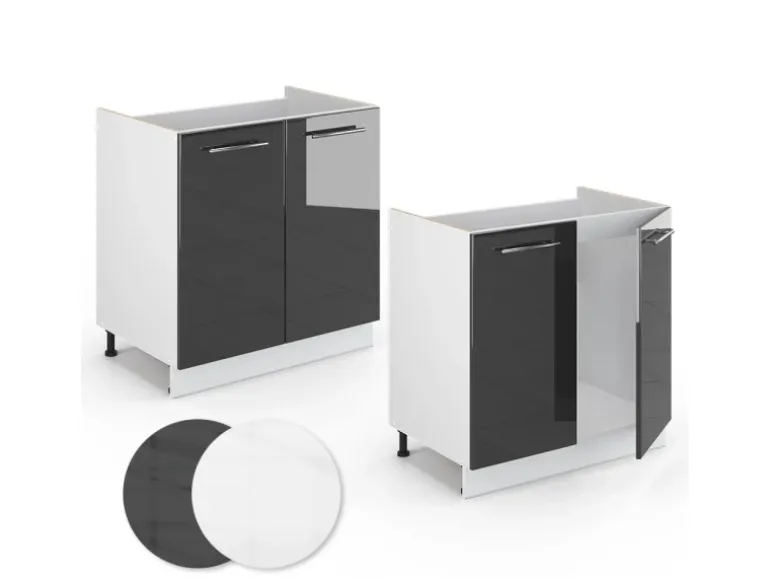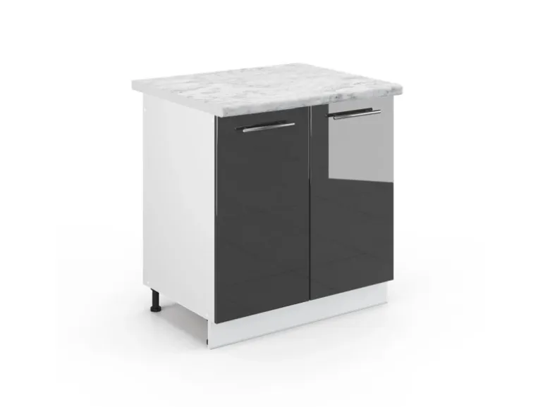 Der Spülenschrank hat Breite 80 cm, Höhe 82 cm und Tiefe 60 cm
