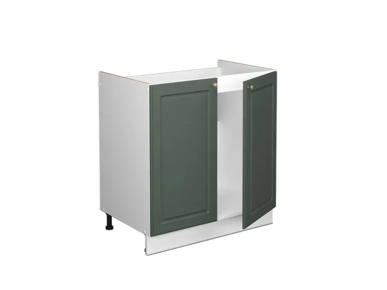 Der Spülenschrank hat Breite 80 cm, Höhe 82 cm und Tiefe 60 cm