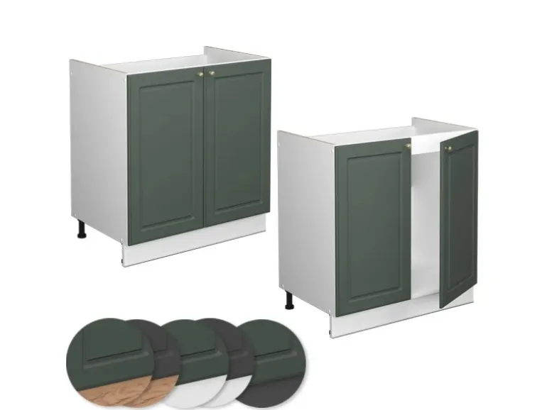 Der Spülenschrank hat Breite 80 cm, Höhe 82 cm und Tiefe 51,6 cm