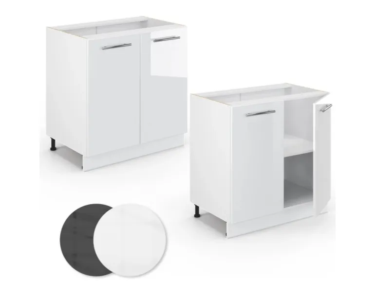 Der Spülenschrank hat Breite 80 cm, Höhe 82 cm und Tiefe 51,6 cm