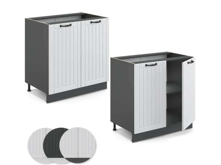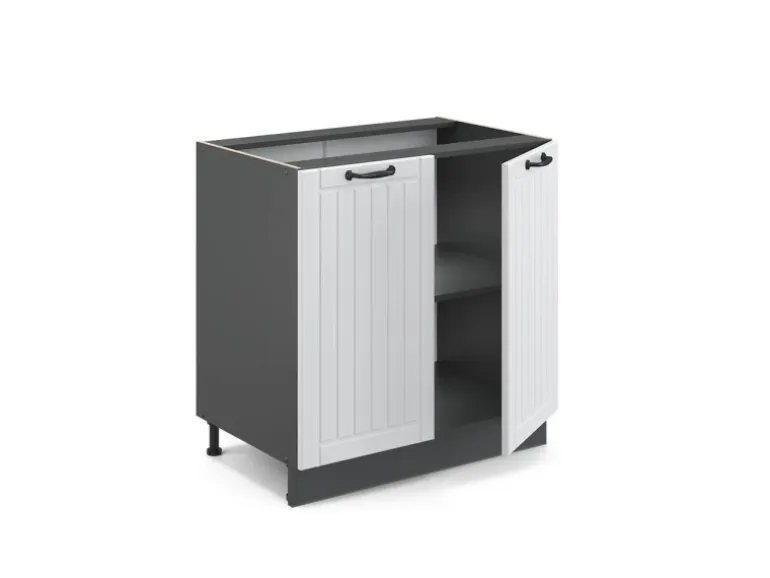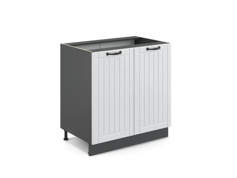 Der Spülenschrank hat Breite 80 cm, Höhe 82 cm und Tiefe 51,6 cm