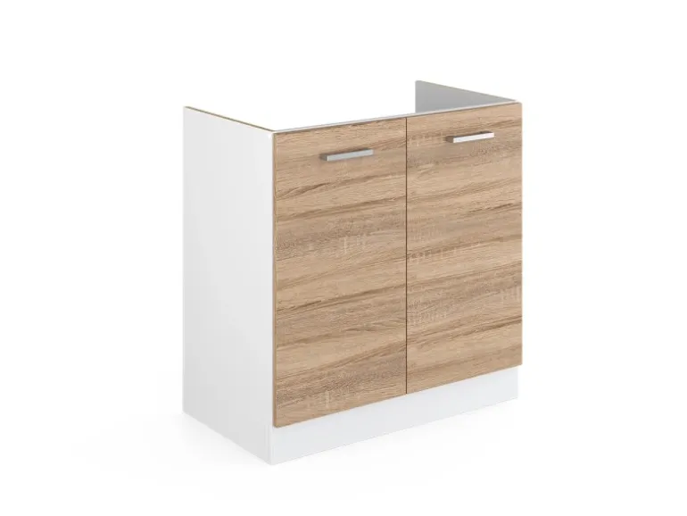 Der Spülenschrank hat Breite 80 cm, Höhe 81,6 cm und Tiefe 46 cm