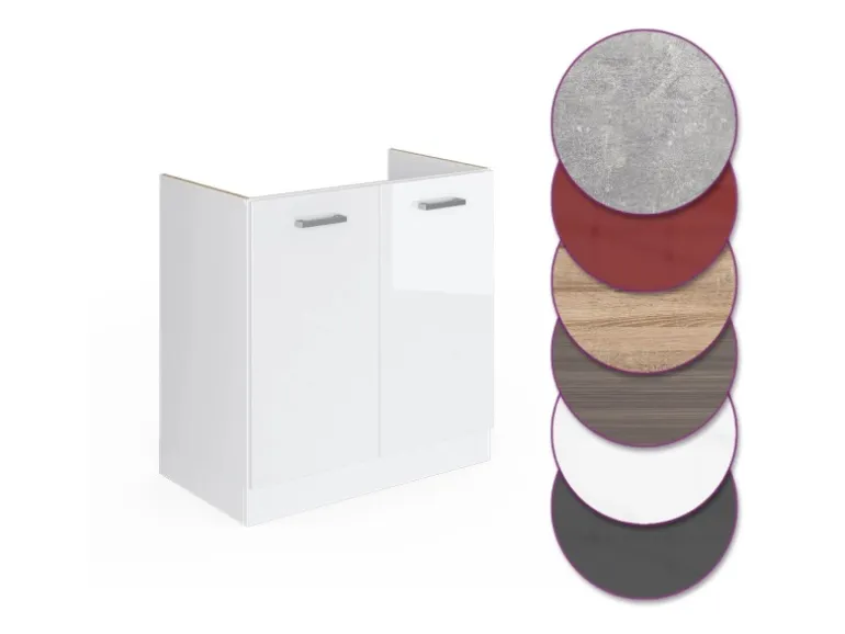 Der Spülenschrank hat Breite 80 cm, Höhe 81,6 cm und Tiefe 46 cm