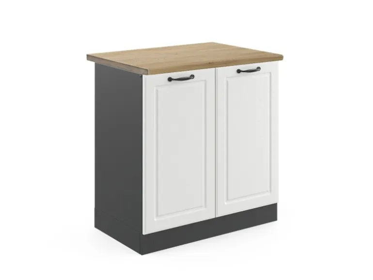 Der Spülenschrank hat Breite 80 cm, Höhe 81,6 cm und Tiefe 60 cm