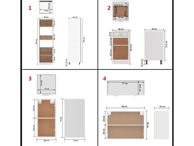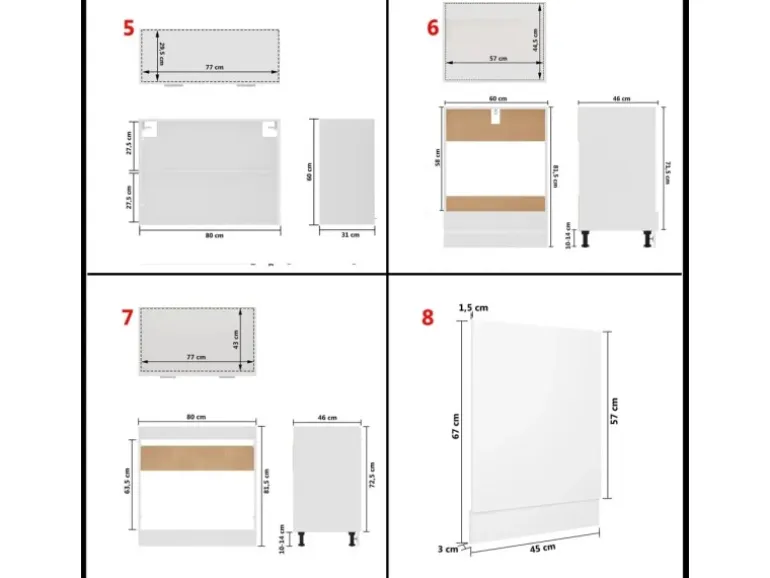 Vicco R-Line Eckküche Rot 257 x 60 cm J-Shapeohne Arbeitsplatte ohne E-Geräte