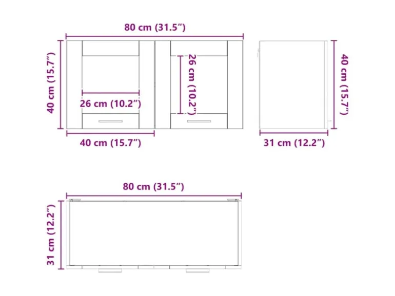 Gesamtabmessungen: 80 x 31 x 40 cm (L x B x H)