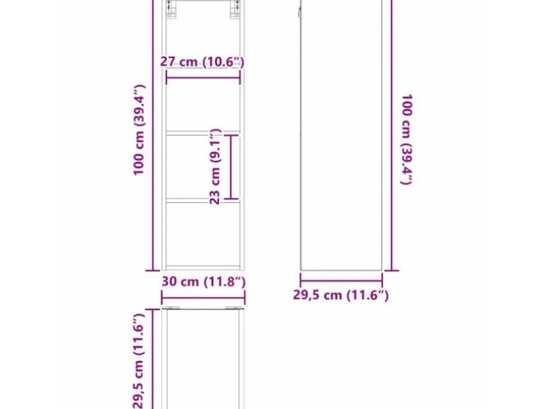 Gesamtabmessungen: 30 x 29,5 x 100 cm (L x B x H)