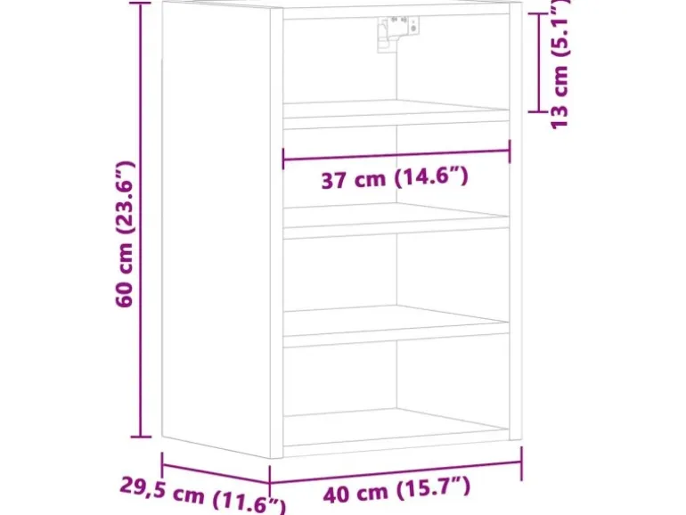 Gesamtabmessungen: 40 x 29,5 x 60 cm (B x T x H)