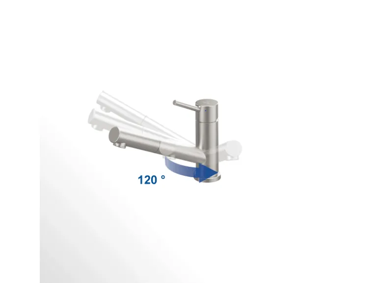 120° SCHWENKBAR: Begrenzter Radius schützt bei Wandmontage vor Stößen und hält die Umgebung trocken.