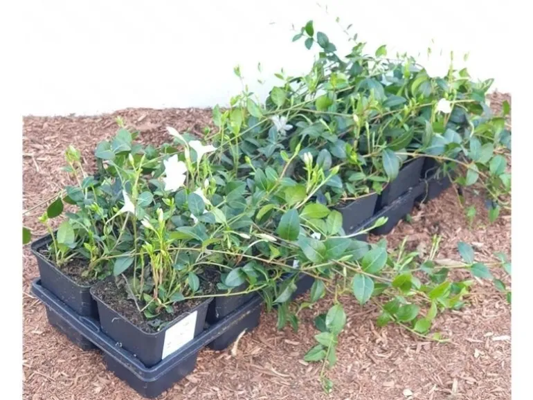 Vinca minor ‚Alba‘ wächst buschig und erreicht eine Höhe von bis zu 20 cm.