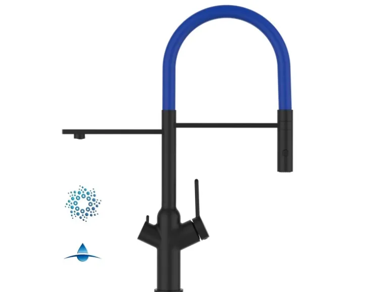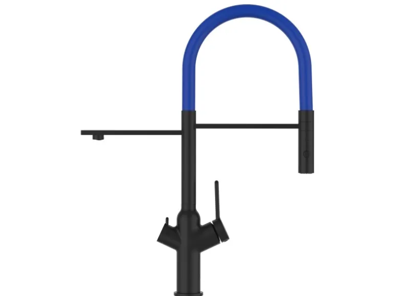 VIZIO 4 Wege Wasserhahn Küchenarmatur BOD mit 360° Schwenkbarem Auslauf Abnehmbare 2 Strahl Handbrause Schwarz Matt   Blau