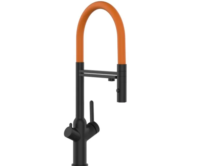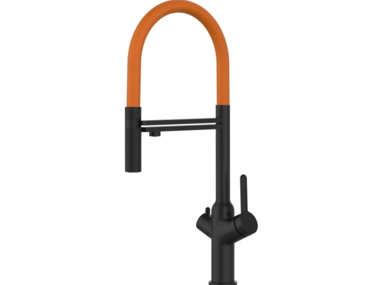 VIZIO 4 Wege Wasserhahn Küchenarmatur BOD mit 360° Schwenkbarem Auslauf Abnehmbare 2 Strahl Handbrause Schwarz Matt   Orange