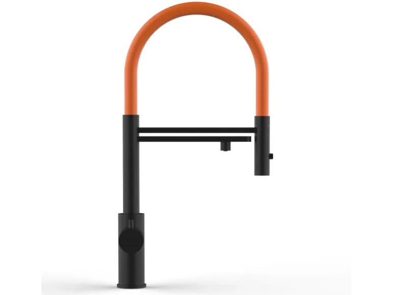 VIZIO 5 Wege Wasserhahn Küchenarmatur Edelstahl Massiv mit 360° Schwenkbarem Auslauf Abnehmbare 2 Strahl Handbrause PVD Schwarz Matt   Orange