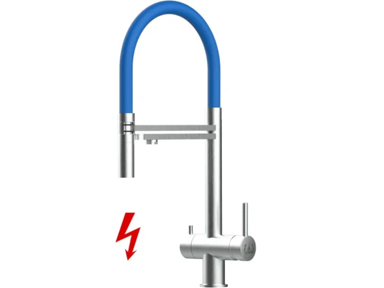 VIZIO NIEDERDRUCK 3 Wege Wasserhahn Küchenarmatur Edelstahl Massiv mit 360° Schwenkbarem Auslauf Abnehmbare 2 Strahl Handbrause Gebürstet   Blau