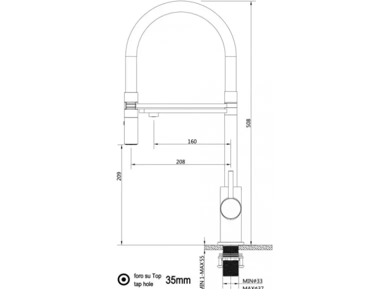 Bohr/Hahnloch der Spüle: 35mm.