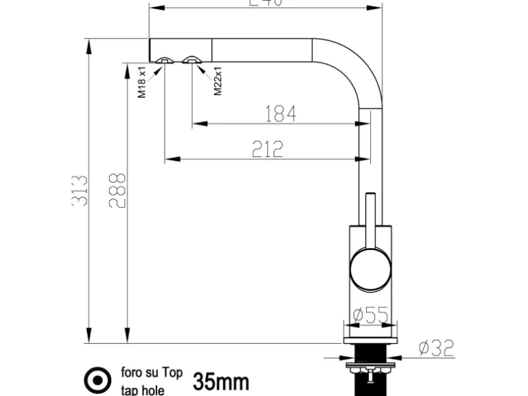 NIEDERDRUCK ARMATUR // Auslauf um 360° schwenkbar